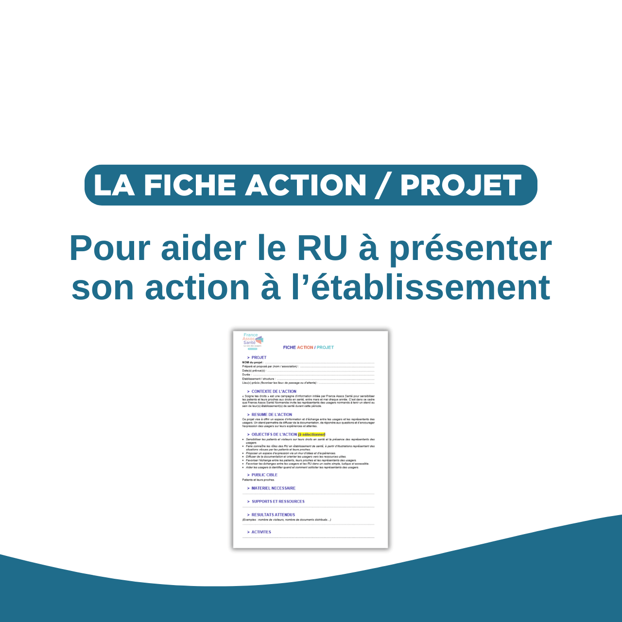 Cette fiche, au format Word modifiable, vous permet de structurer et synthétiser votre action. Une fois complétée, elle facilite les échanges avec votre établissement de santé et la présentation de votre projet.